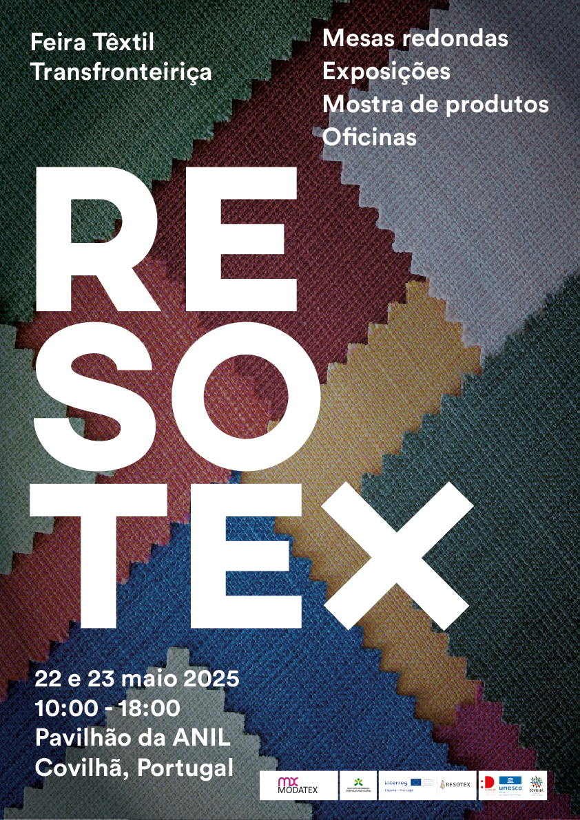 Nos dias 22 e 23 de maio, a Covilhã recebe a primeira edição da Feira Têxtil Transfronteiriça RESOTEX, no Pavilhão da ANIL, com participação de empresas locais, do Fundão e de Cáceres. O evento integra a 1.ª Trienal Internacional de Design da Covilhã e inclui mesas redondas, oficinas, mostras de produtos e visitas guiadas.